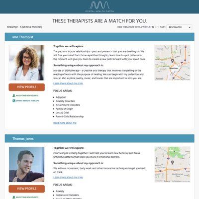 Want to efficiently find therapists who are most likely to meet their needs.